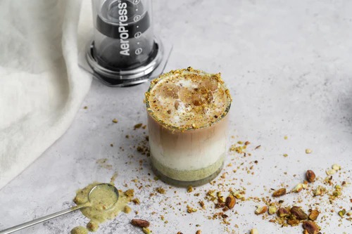 AeroPress Pistachio Honey Iced Latte